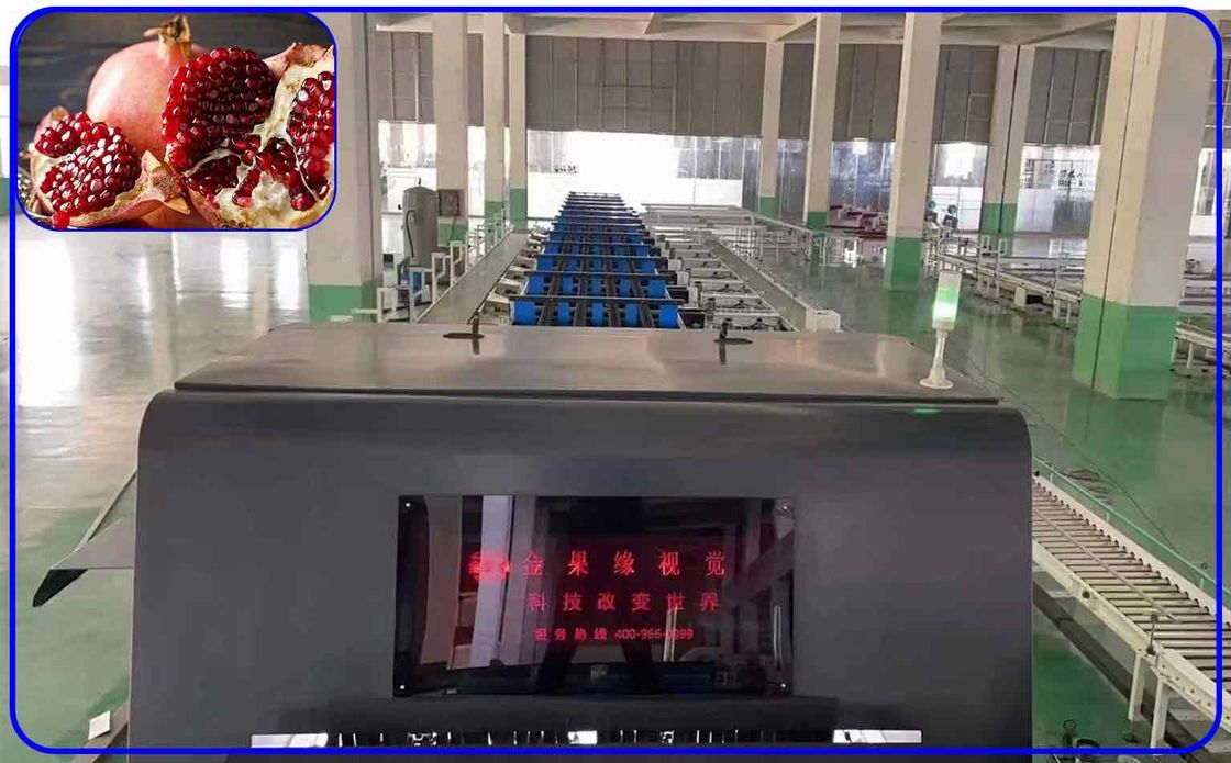 : La tecnología de la visión de ordenador se utiliza para recoger la información tal como el color, forma de la fruta, defectos y otra información del material. Hay no menos de 2 cámaras de color por el canal, que no puede observar de ángulos múltiples y realizar detección versátil y la ninguna muerta del ángulo.